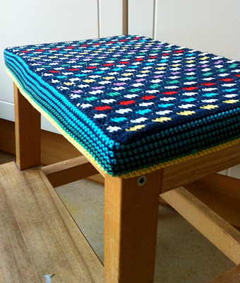 | De lap die te groot was voor een pannenlap is nu een dekje geworden |