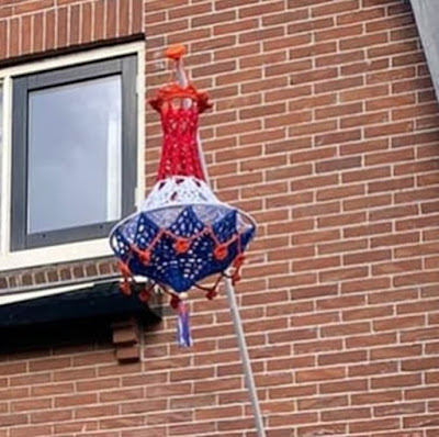 En dan iets vrolijks op Koningsdag en 5 mei. De kroonluchter Jasmijn in de hollandse kleuren, is het niet enorm vrolijk? Dat beloofd wat voor volgend jaar.